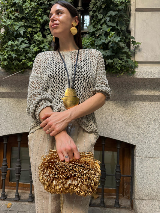 Maxi-Collar Monies acrílico, piel y pan de oro