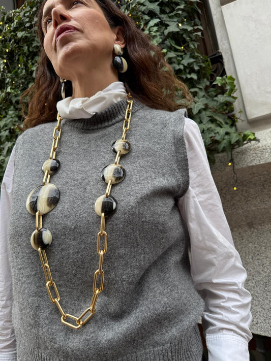 Maxi-Collar Monies acrílico, piel y pan de oro