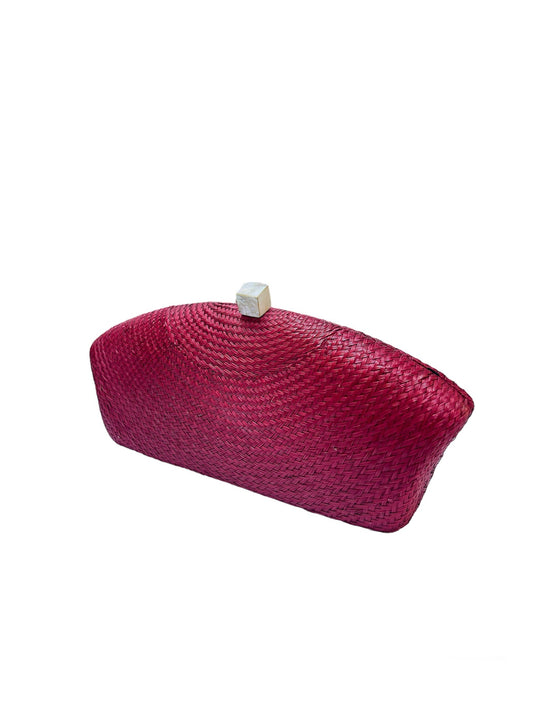 Clutch artesanal en buntal y broche en piedras naturales. Color: natural (hueso)