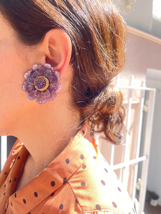 Pendientes cortos: flores planas violetas