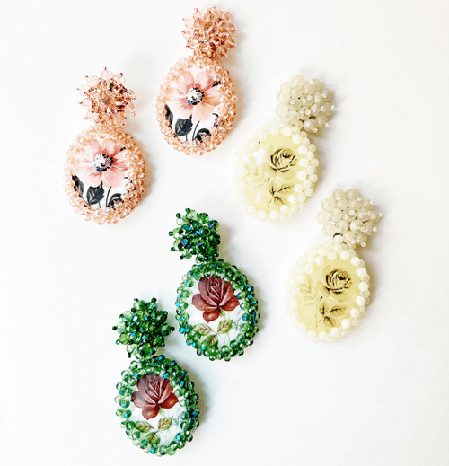Pendientes floral y cristal verde Fahoma
