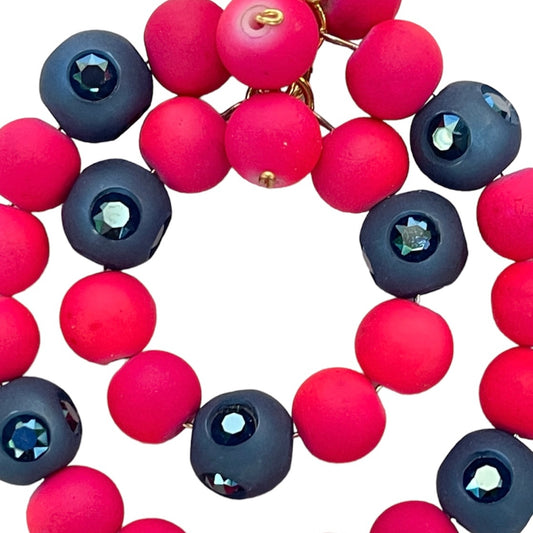 Pendientes circulares bolitas azul y rosa Fahoma