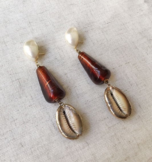Pendientes largos concha y perla