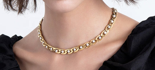 Collar de fiesta cascada de cristal (dorado - plateado)