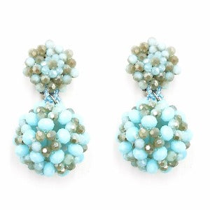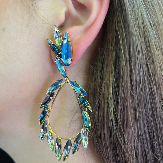 Pendientes gota de cristal y cabezal floral en cristal facetado verde botella