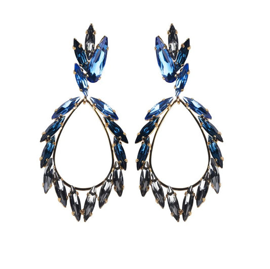 Pendientes gota de cristal y cabezal floral en cristal facetado rojo