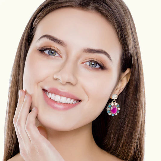 Pendientes A.H. estilo vintage turquesa circón fucsia