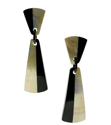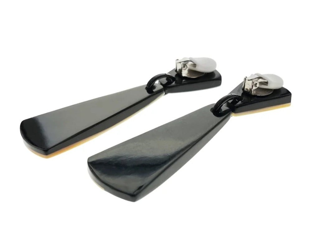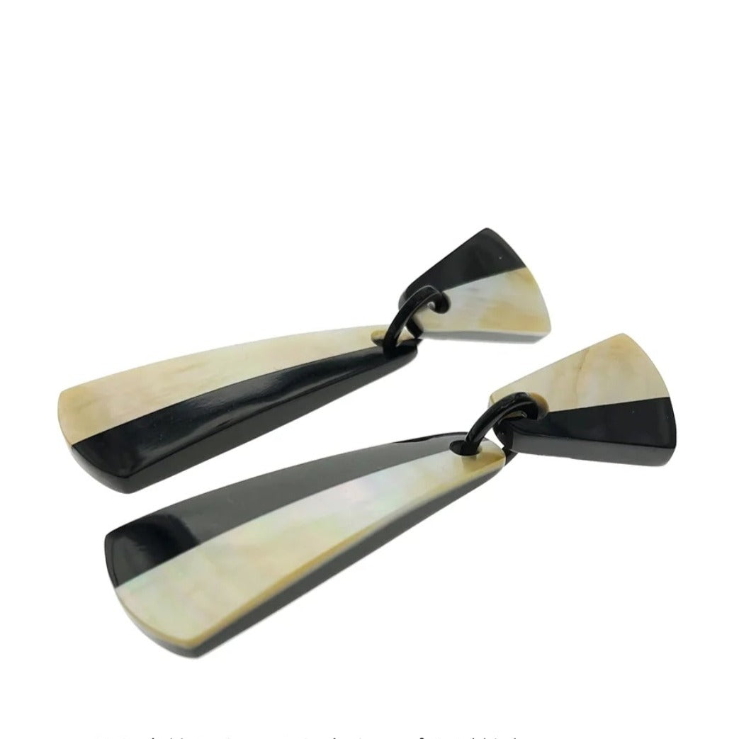 Pendientes alargados de resina negra y nácar
