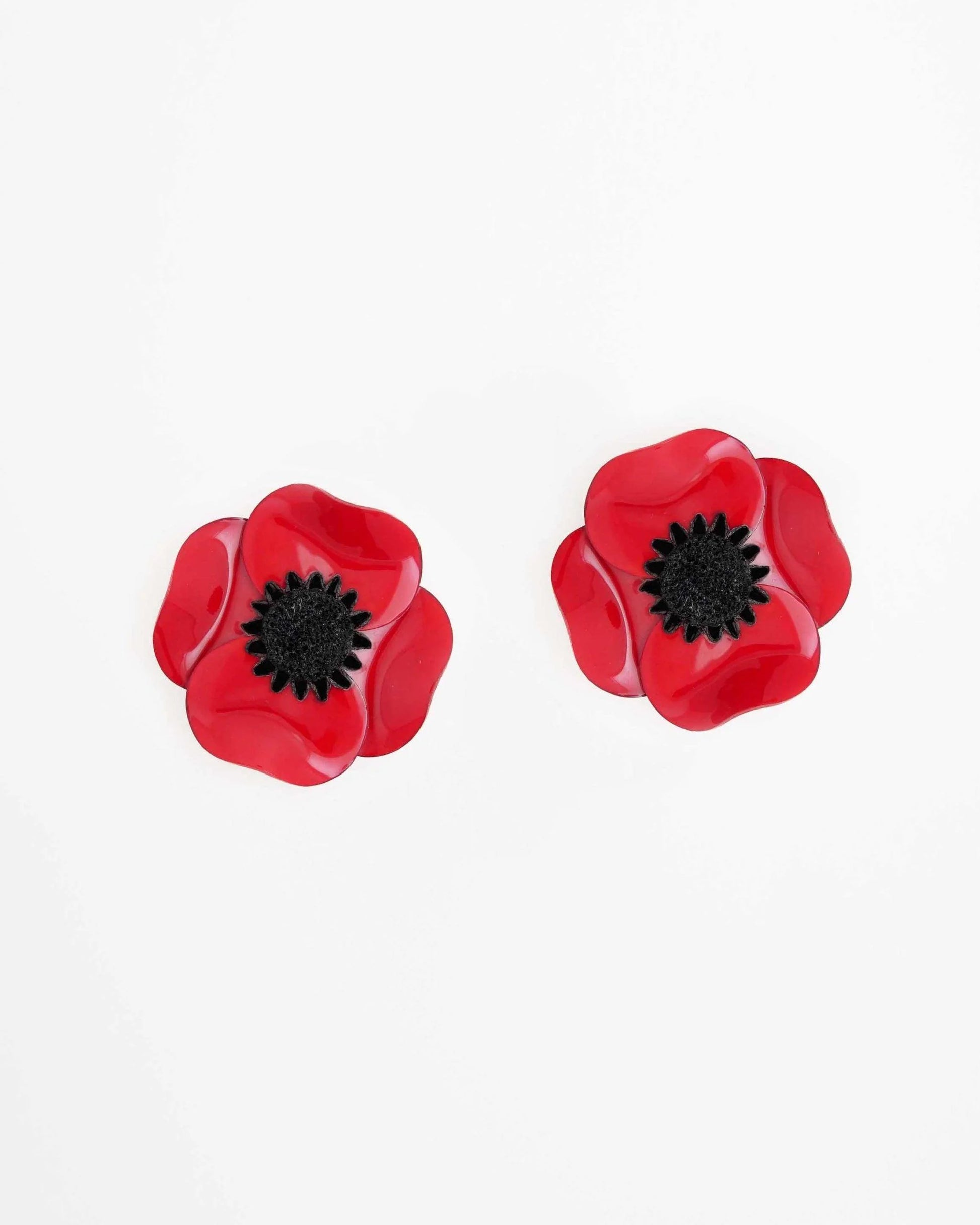 Pendiente corto anémona roja en resina