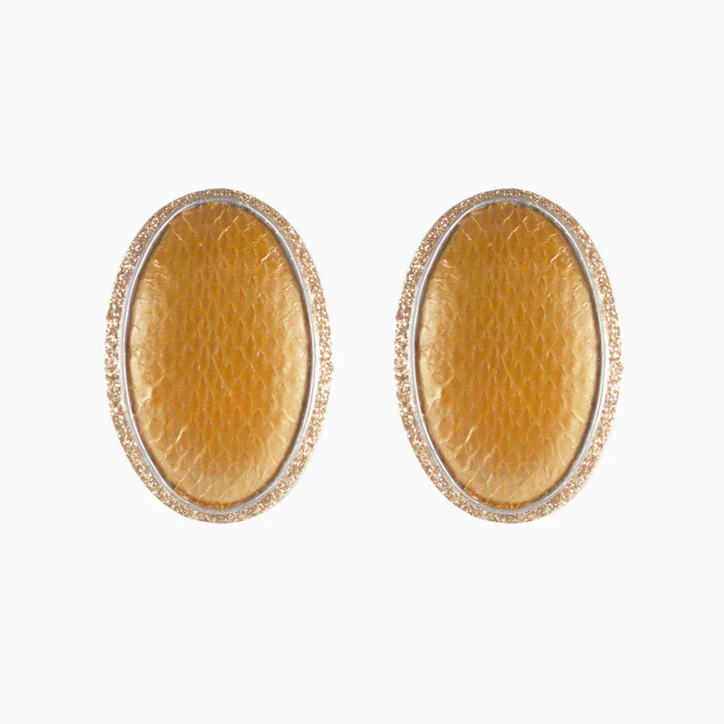 Pendiente corto ovalado de piel de serpiente amarillo dorado