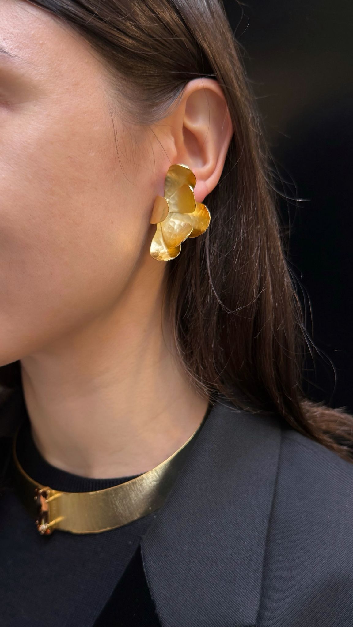 Pendientes de perforación hipoalergénicos con baño de oro de 18k y acabado bronce. Sin níquel.