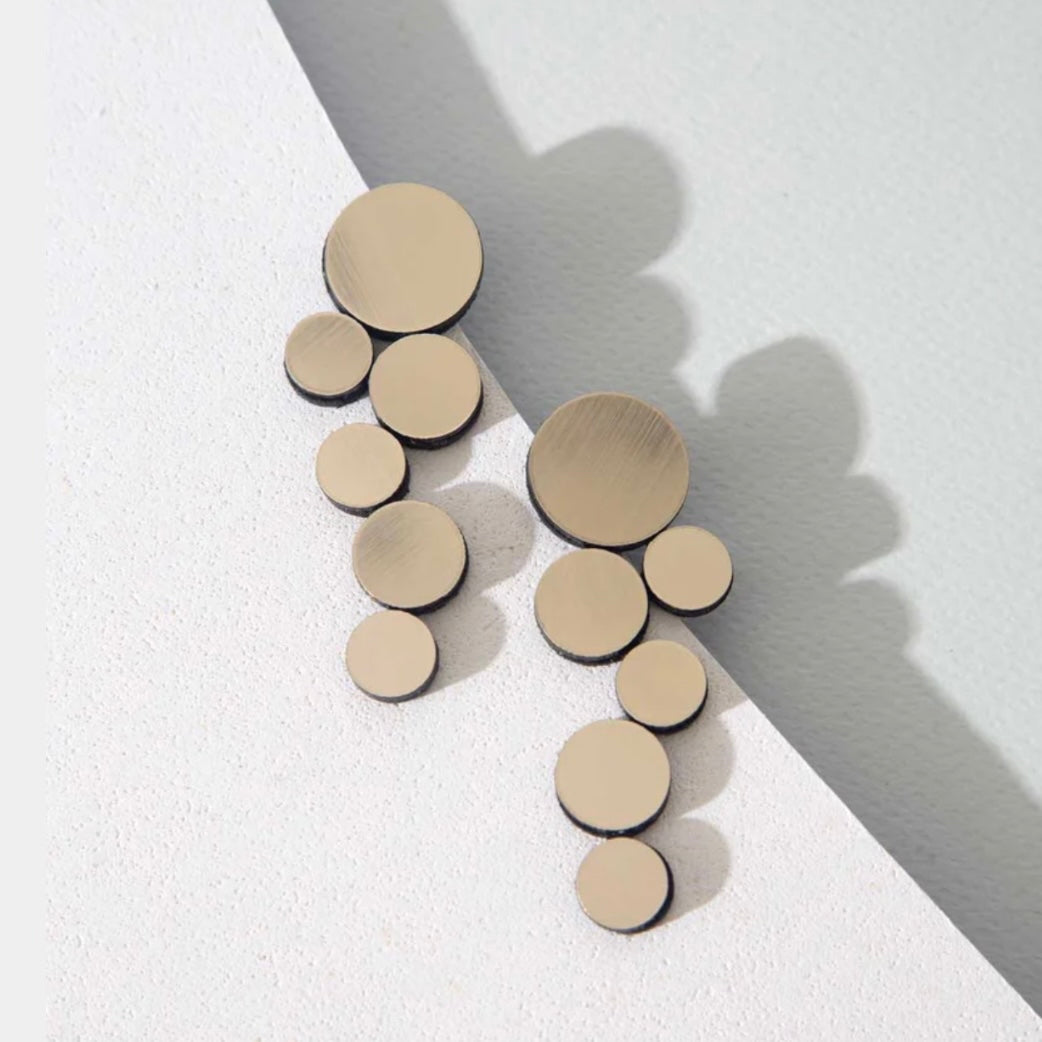 Los pendientes están creados a partir de círculos espejados más pequeños, de modo que redefinen el tradicional pendiente de la argolla.