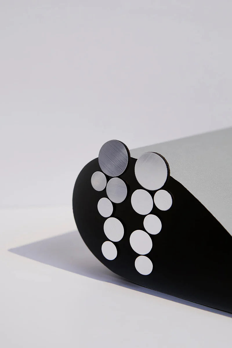 Los pendientes están creados a partir de círculos espejados más pequeños, de modo que redefinen el tradicional pendiente de la argolla.