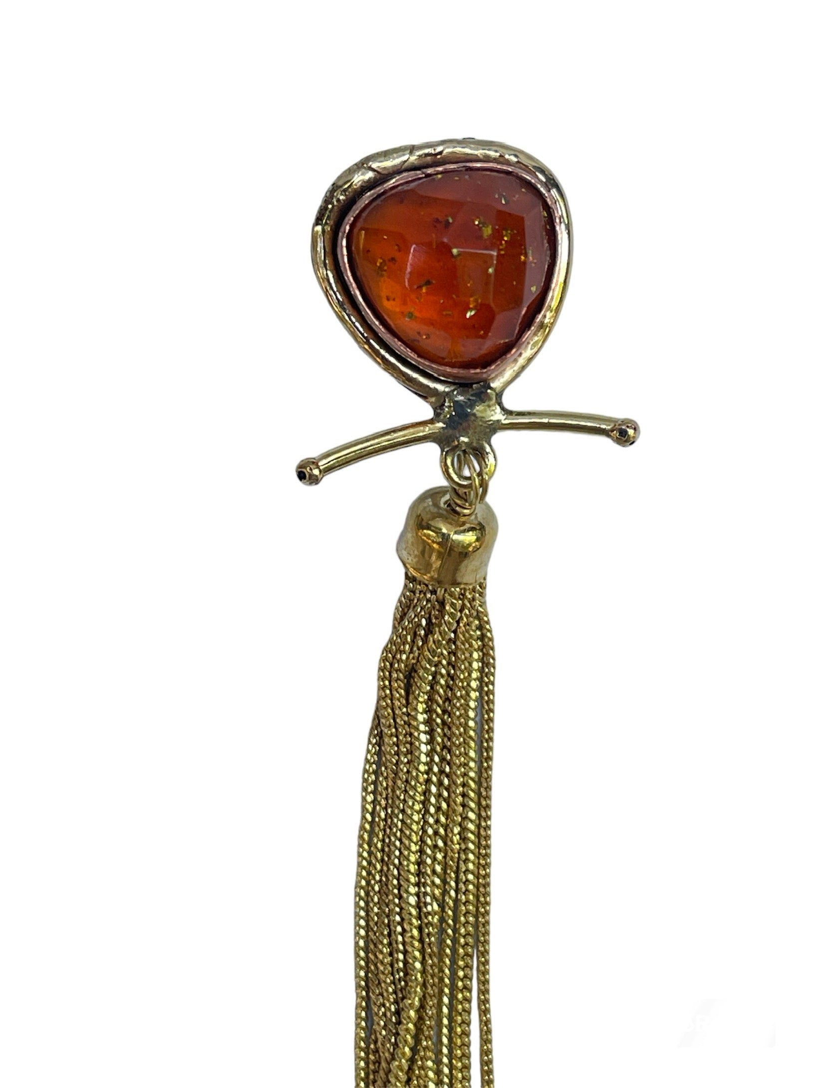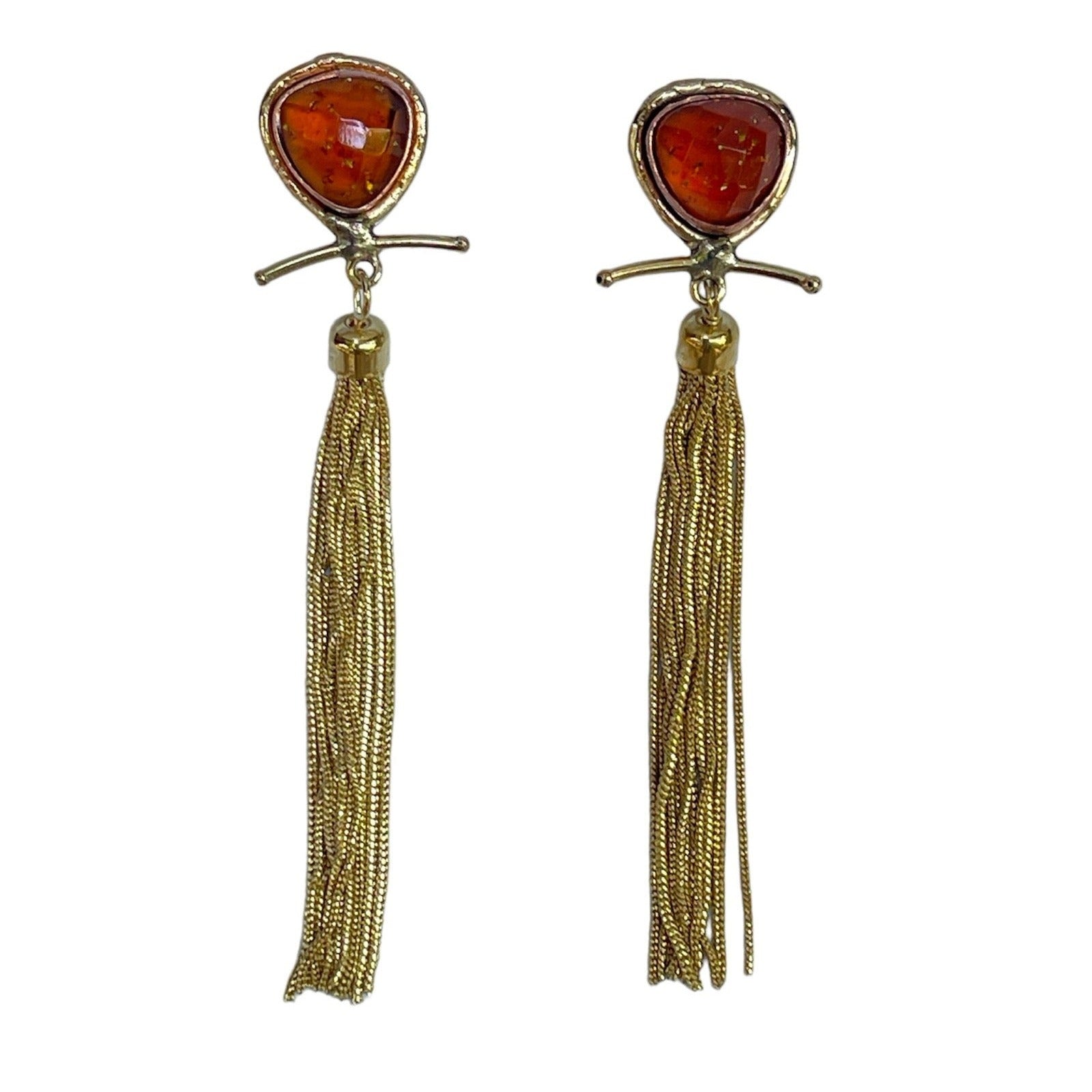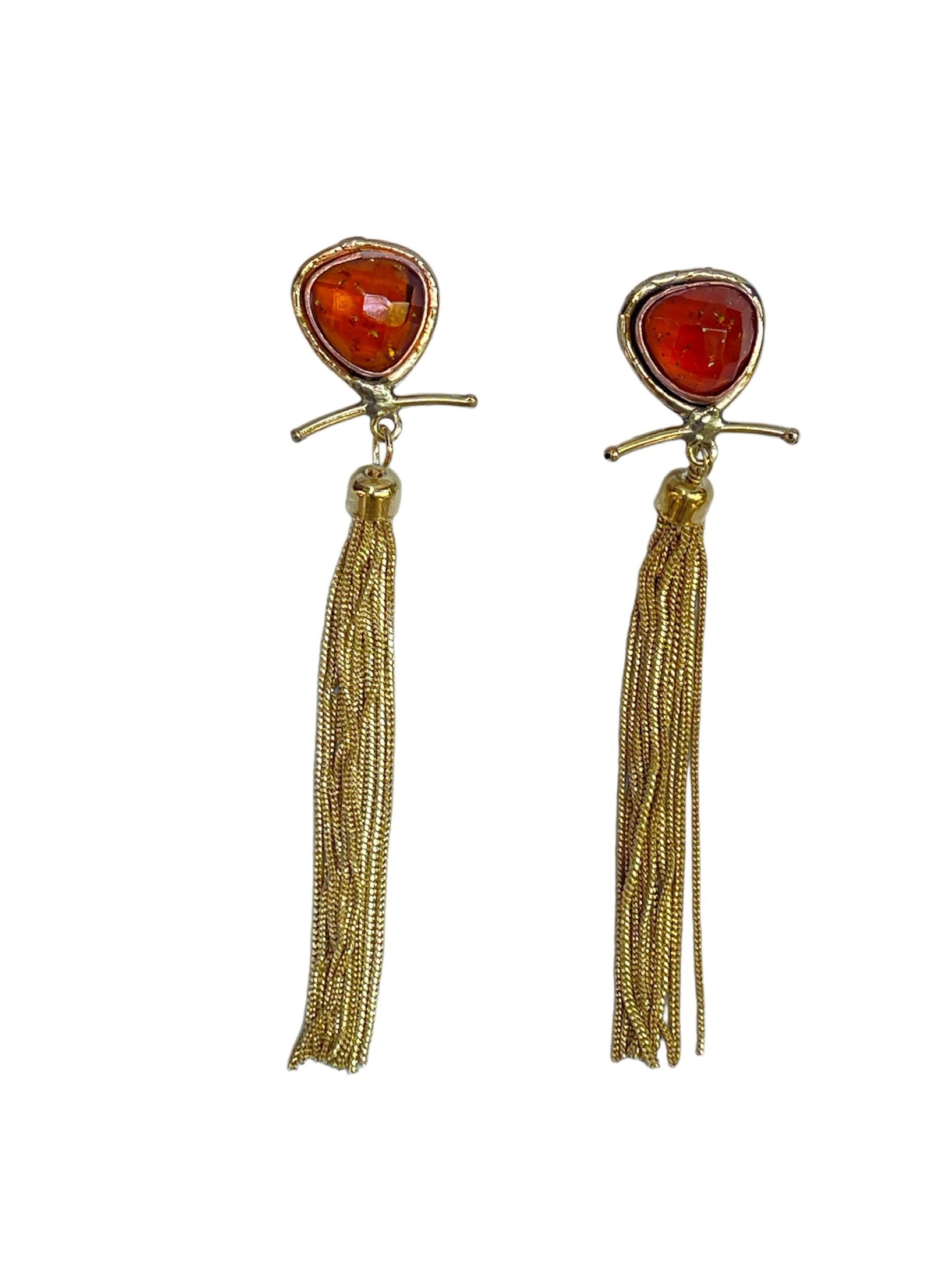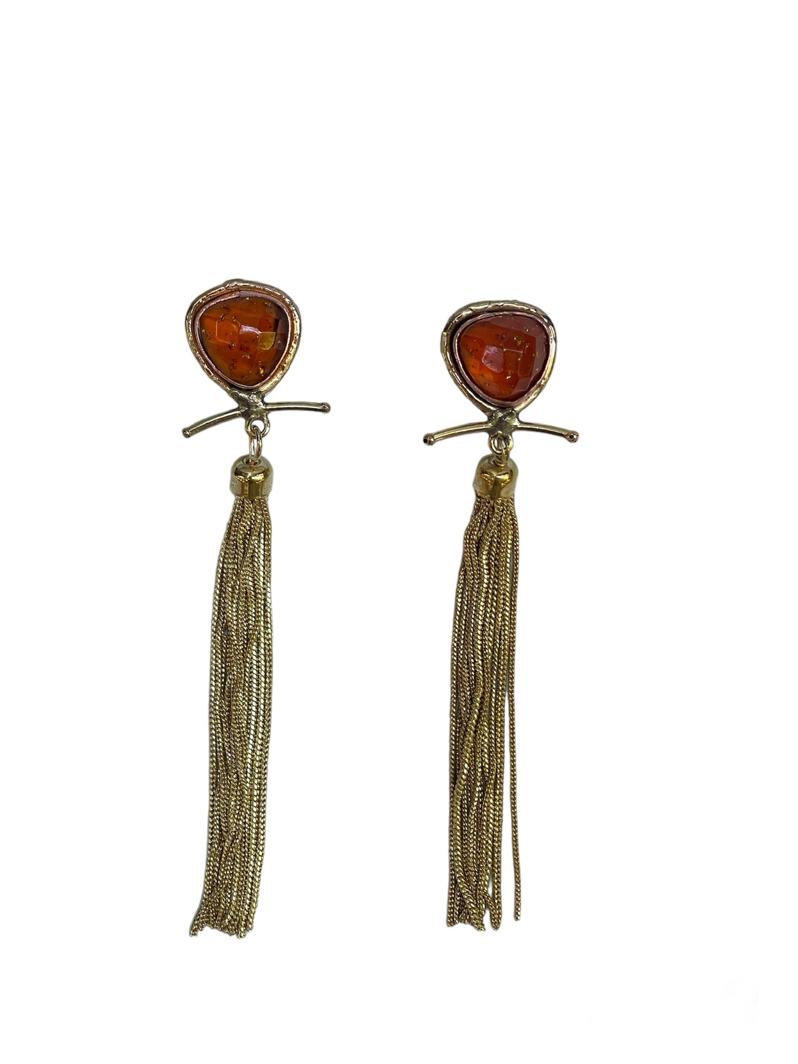 Pendientes de bronce bañado, ámbar y flecos dorados