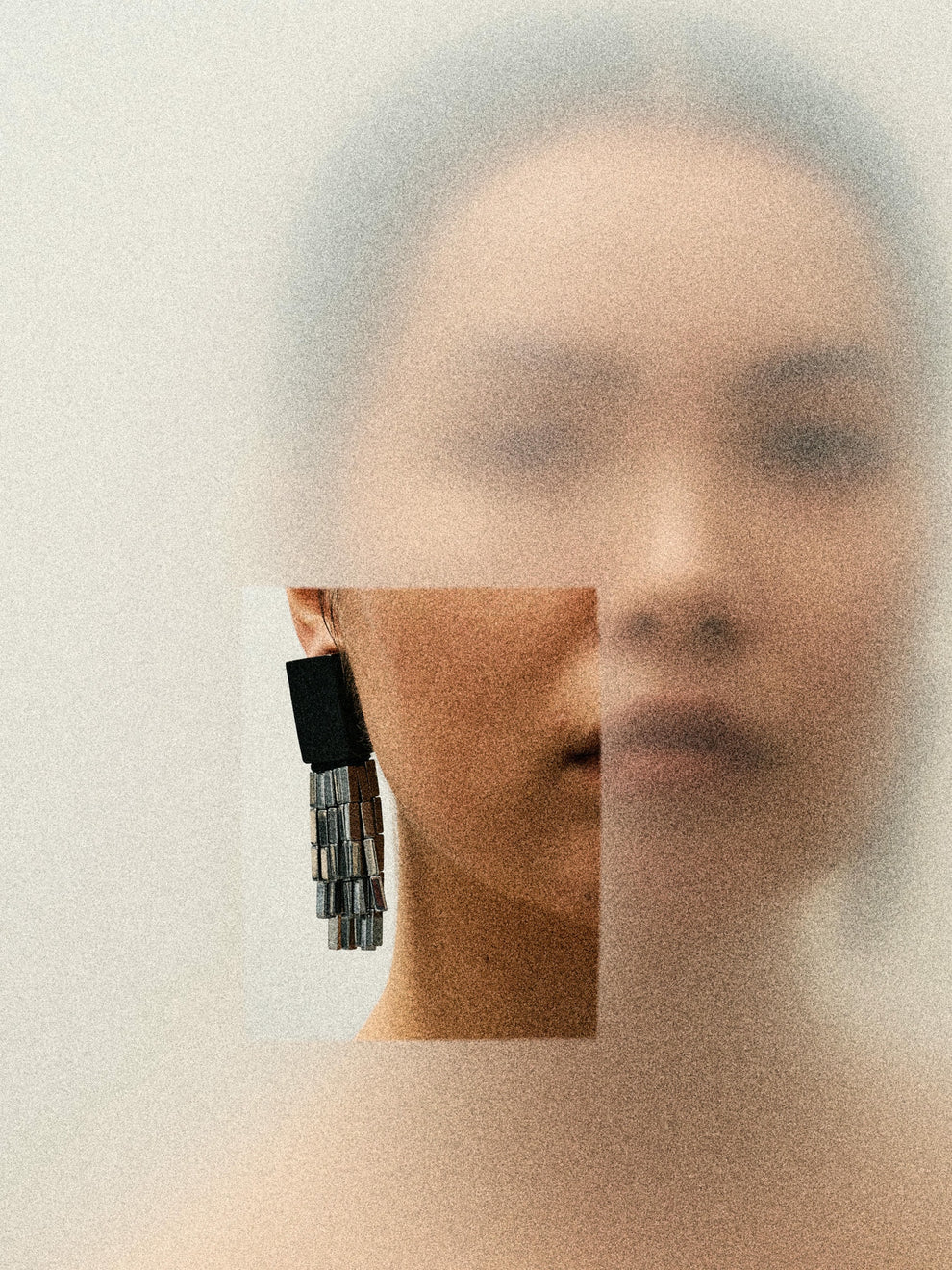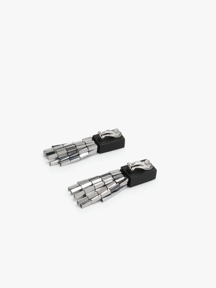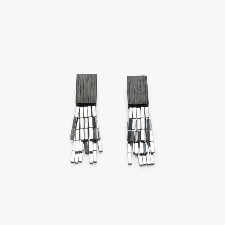 Pendientes de la casa danesa MONIES elaborados de forma artesanal en hematite pulido y acacia negra
