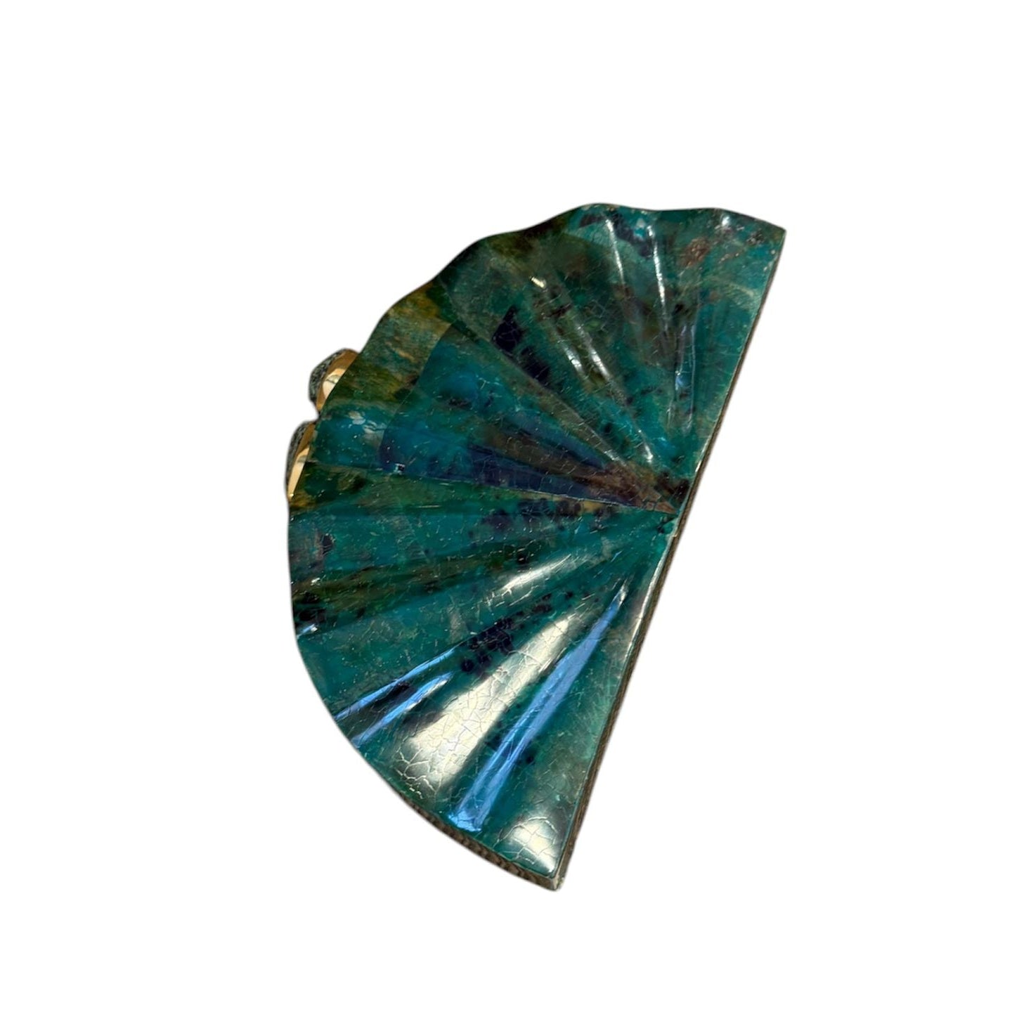 Bolso joya de nácar natural teñido color malaquita, elaborado a mano.