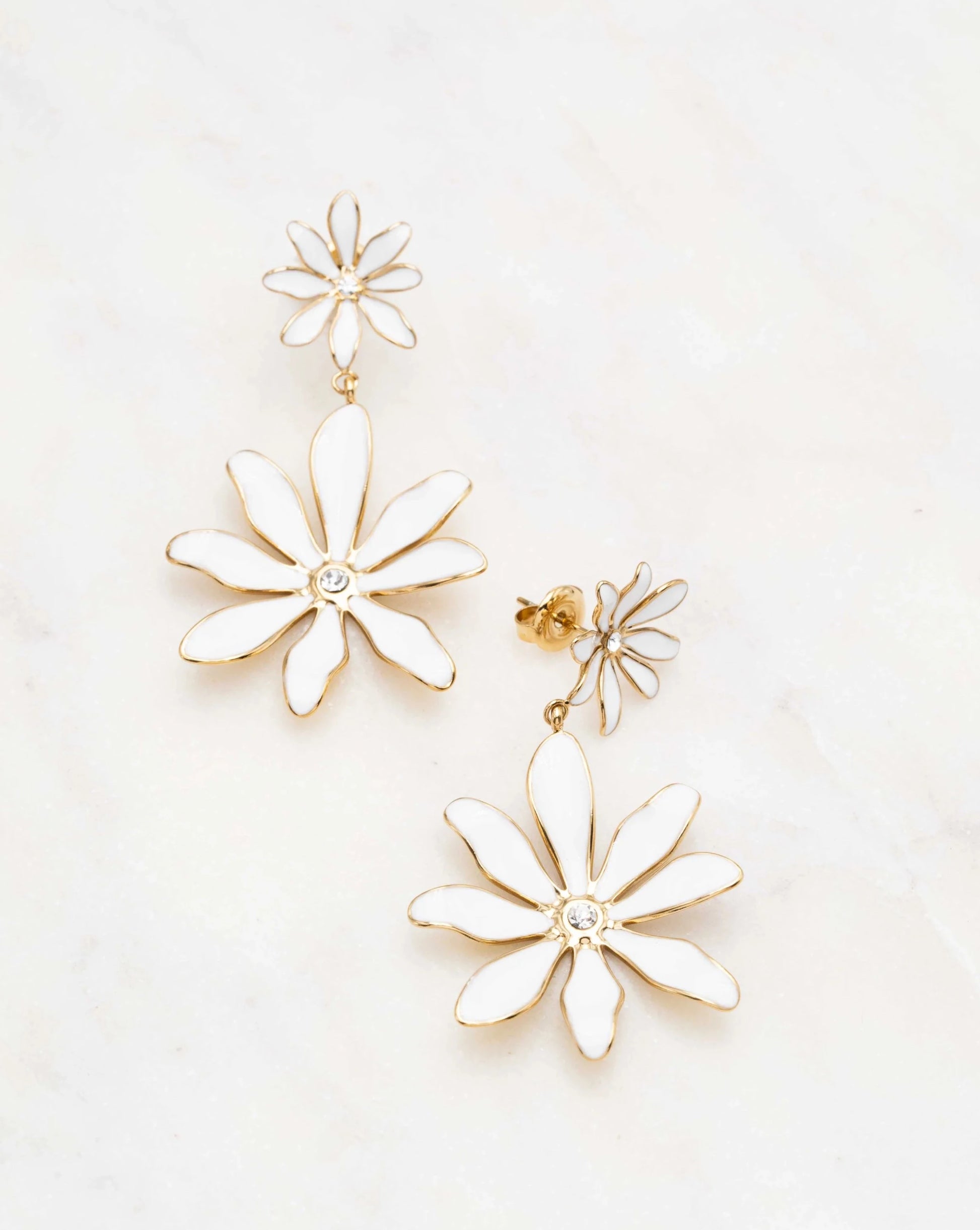 Pendientes de botón compuestos por dos piezas con un estampado floral esmaltado de colores decorado con una strass.