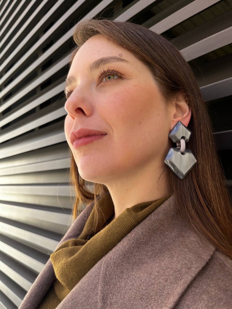 Pendientes con forma de pentágonos, muy ligeros ya que su material es resina italiana.